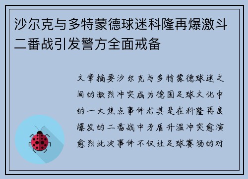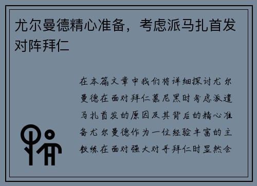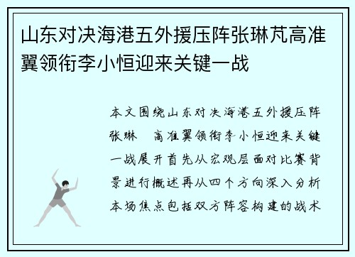 本文将详细探讨蒯纪闻在对阵澳大利亚的比赛中,采用的战术布局及其效果。这场比赛中,蒯纪闻和球队通过专门阵型的精心训练,充分发挥了战术的优势,取得了显著的比赛成果。文章首先会从战术布局的四个重要方面进行详细分析,分别从阵型选择、训练准备、战术执行以及效果评估等角度进行阐述,旨在展现蒯纪闻如何通过科学的战术安排,成功应对澳大利亚队的挑战。最后,文章将总结蒯纪闻的战术布局对整体比赛结果的影响,并提出相关的...