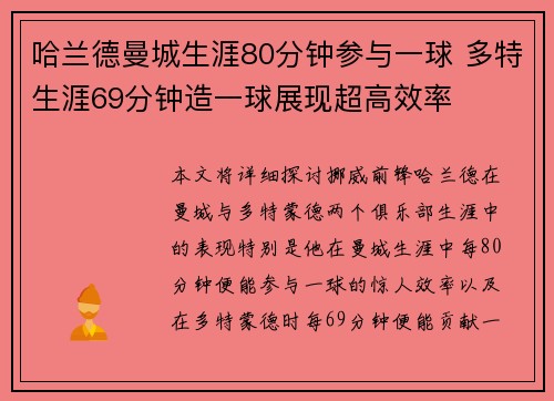 本文将详细探讨哈兰德在国际比赛中领跑德转列国家队场均进球榜的成就,并与盖德·穆勒的历史记录作对比。文章从四个方面进行分析:哈兰德的进球效率,盖德·穆勒的历史地位,二者的比赛环境差异,以及未来潜力的展望。通过这些方面的分析,揭示哈兰德如何逐步接近盖德·穆勒,并可能在未来超越这位德国传奇。文章最终将总结哈兰德与盖德·穆勒的进球数据和影响力,探讨这一记录的长远意义。1、哈兰德的进球效率哈兰德在国家队的进...
