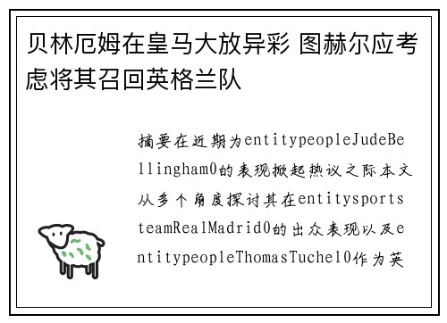 文章摘要:本文通过皇马主场战役,描绘了阿诺德替补登场,小马右边锋卡马文加中心的精彩战场场面。从战术部署、球员表现、比赛进程以及胜利成果四个方面展开详细阐述,呈现了一场激动人心的比赛。阐述的内容涵盖了球场上的各种细节,展现出一场激烈对抗的画面。1、战术部署在比赛开始前,主教练对阵容进行了精心调整,决定让阿诺德替补登场,小马右边锋卡马文加中心。这一战术部署的背后有着深刻的用意,旨在提高球队的进攻效率和...