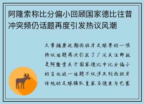本篇文章将围绕阿尔瓦雷斯近期发表的言论展开,深入探讨他对阿森纳构成威胁的信心。阿尔瓦雷斯在一次采访中明确表示,凭借球队强大的优势,他们完全有能力对阿森纳构成威胁。本文将从四个方面详细分析这一观点。首先,阿尔瓦雷斯将从球队实力、战术打法、关键球员表现以及心理优势等方面阐述如何对阿森纳产生威胁。通过这四个方面的分析,我们将全面了解这番言论背后的深意与逻辑,并探讨阿尔瓦雷斯的信心是否成立,以及对阿森纳未...